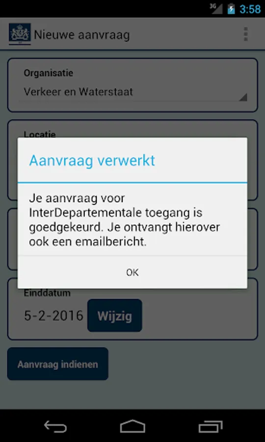 Access anytime, anywhere with your Rijkspas. No more queuing for reception. Now also arrange it with your business or private mobile device. The App works the same as the IDT website on the Government Portal. You select the organization and location where you want access. If the organization allows it, you can quickly arrange access while you are already at the door. For some locations, the organization will first assess your application. In that case, you will receive an email within 1-3 working days whether the application has been approved. So arrange access easily and flexibly at a time that suits you!