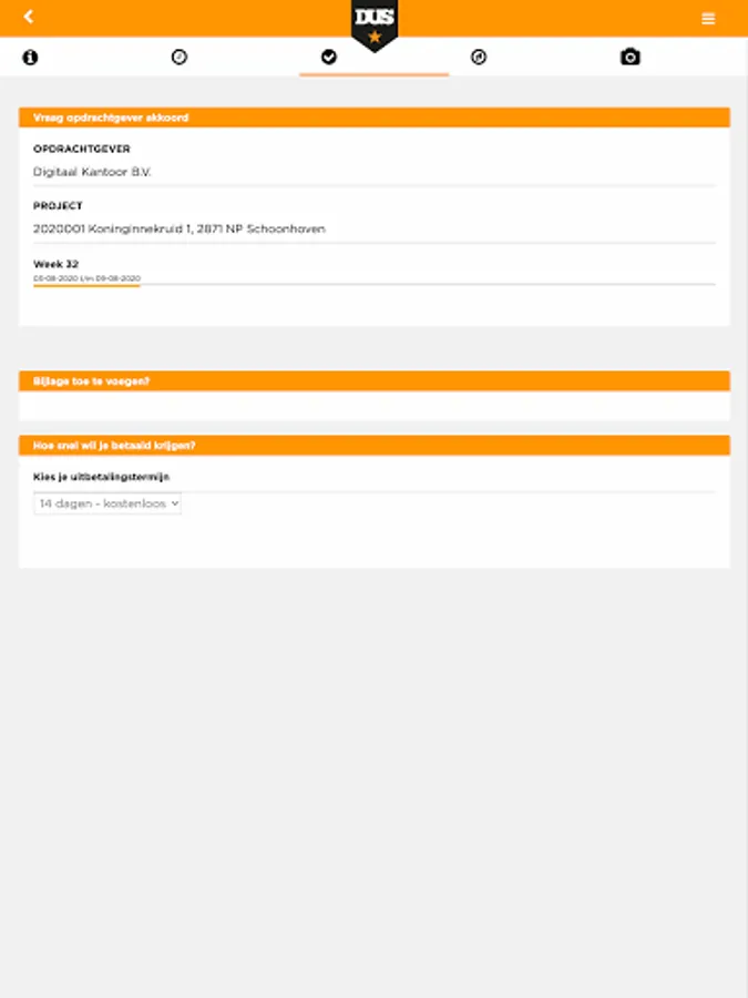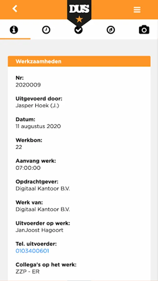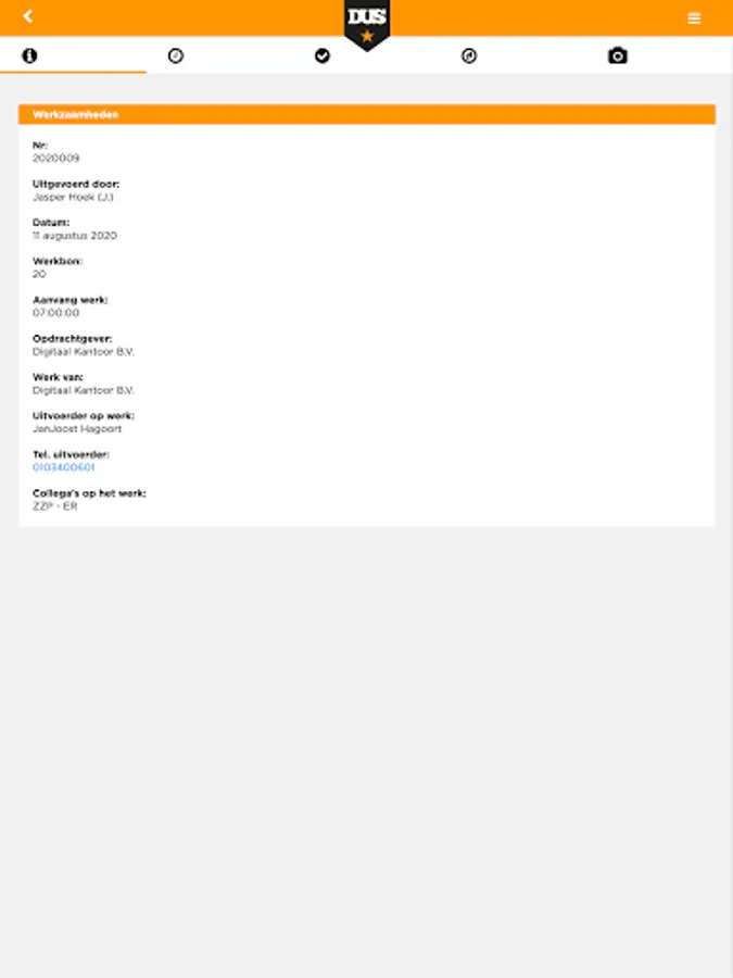 With the DUS app you can easily create work orders and submit them to your client. You are also always up to date with the necessary documents and contracts.