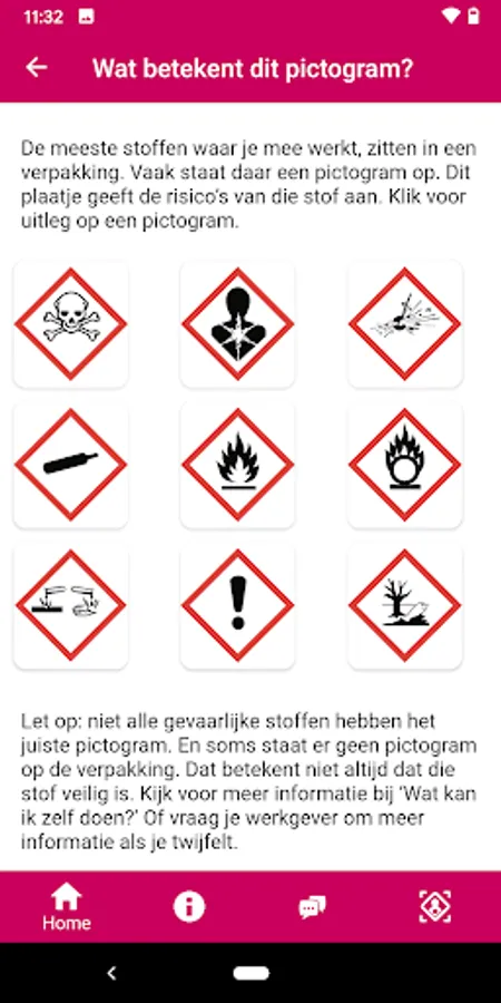 An explanation is given of the pictograms that are often on packages. It also explains what H and P phrases mean, what the limit values of substances are, which ten substances are the most dangerous, which five rules of thumb apply to first aid in the event of accidents with hazardous substances, how you can recognize hazards and what you can do yourself to limit the risks.