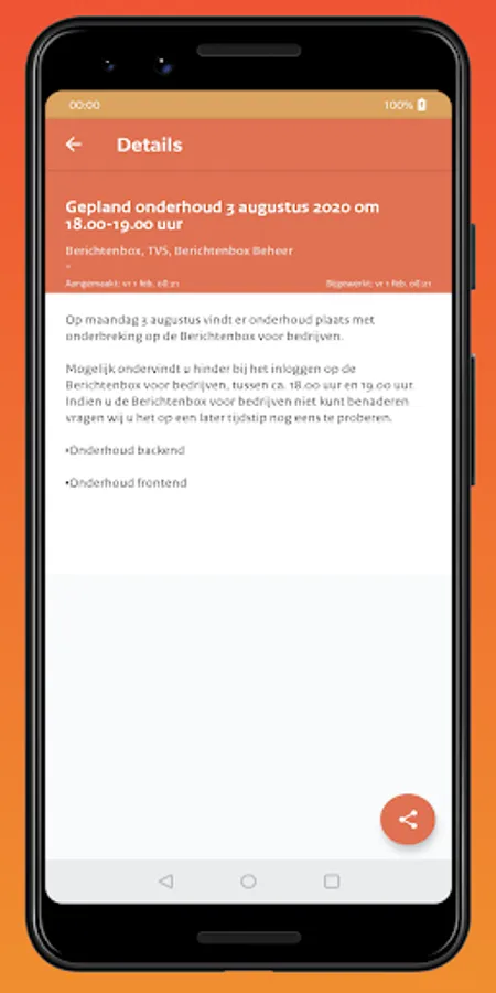 With eFlash, users of, among others, Message Box for Business and TVS can be informed about disruptions, interruptions and maintenance. We strive for transparent information because a warned and informed user counts for two.