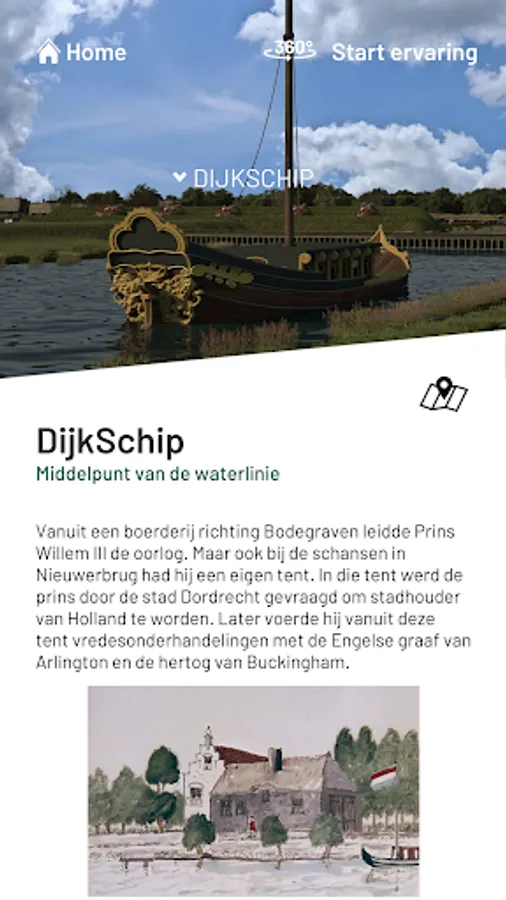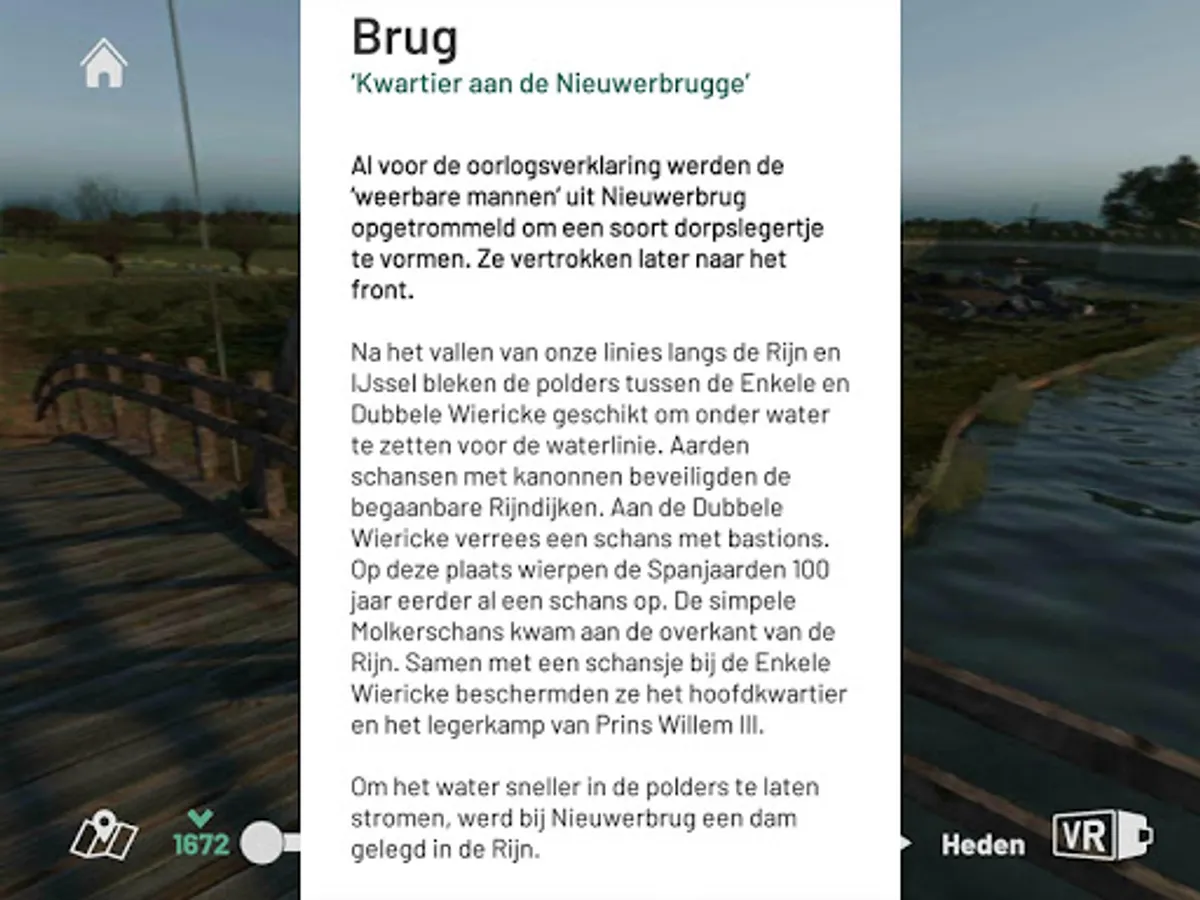 In addition to the beautiful panoramas, this application offers a lot of background information about the various events in the Nieuwerbrug from 1672.