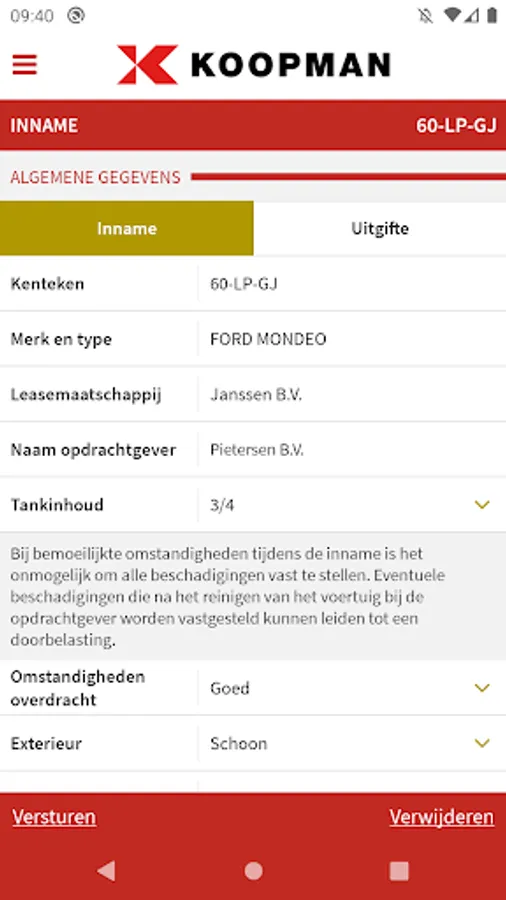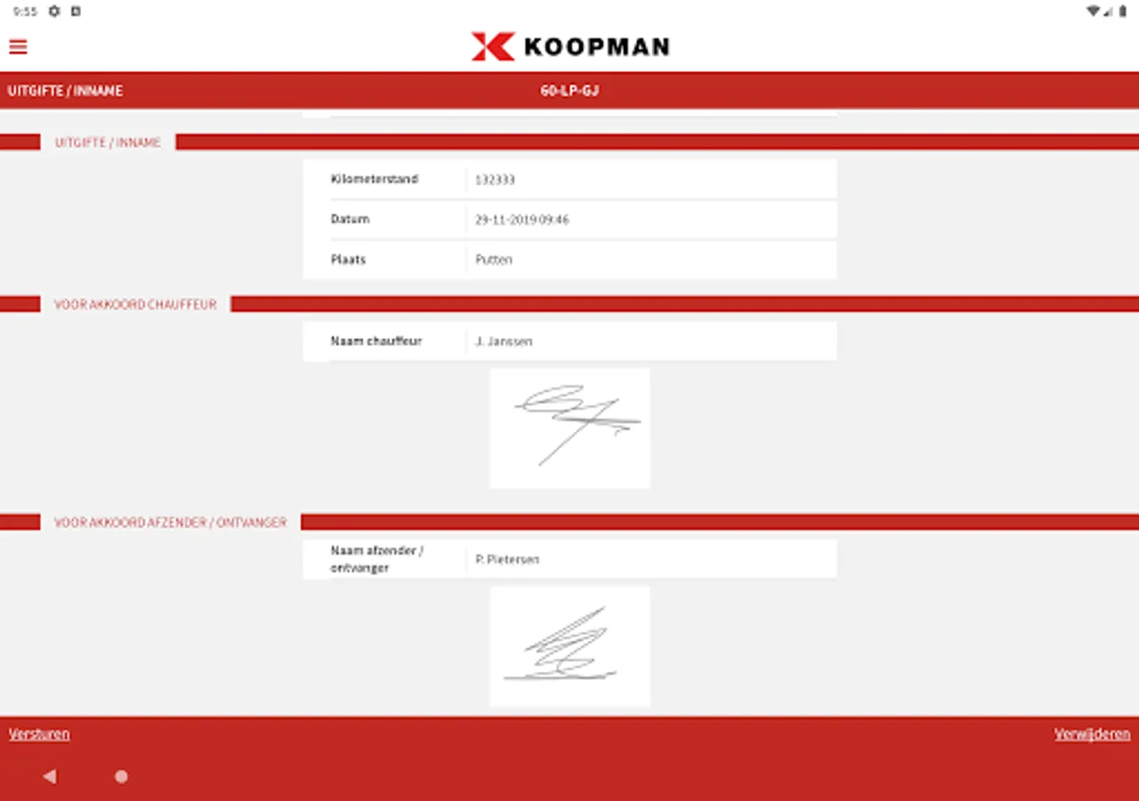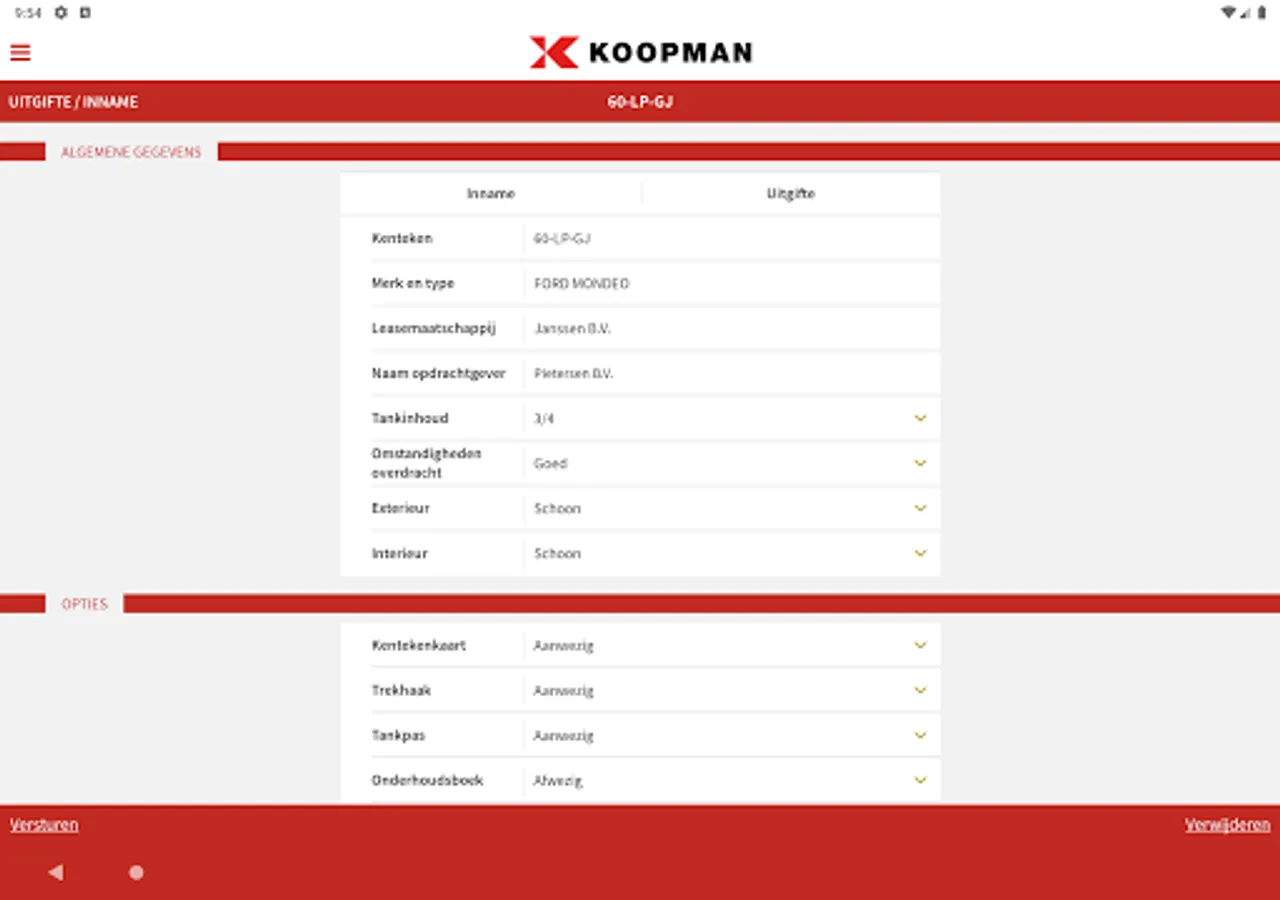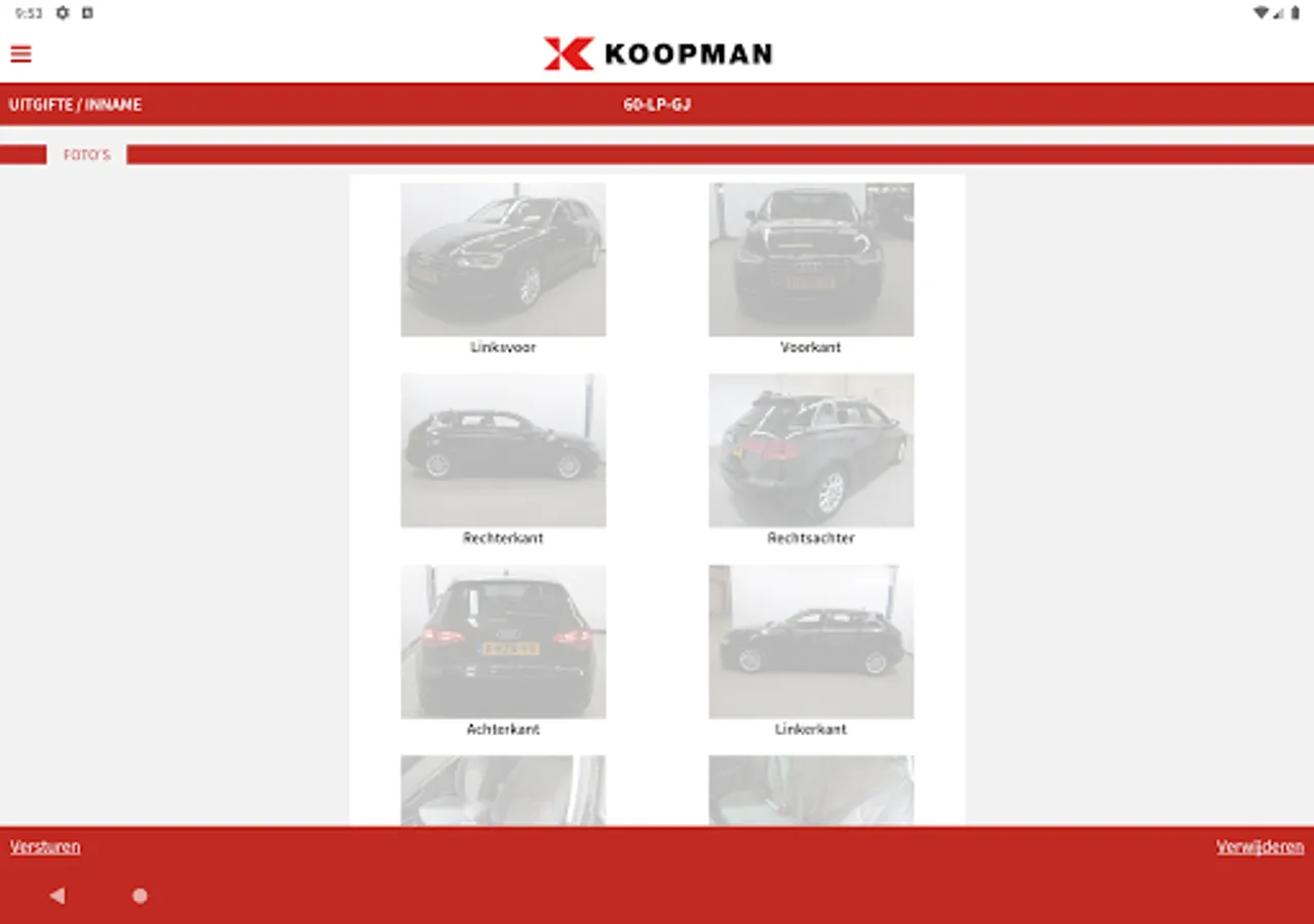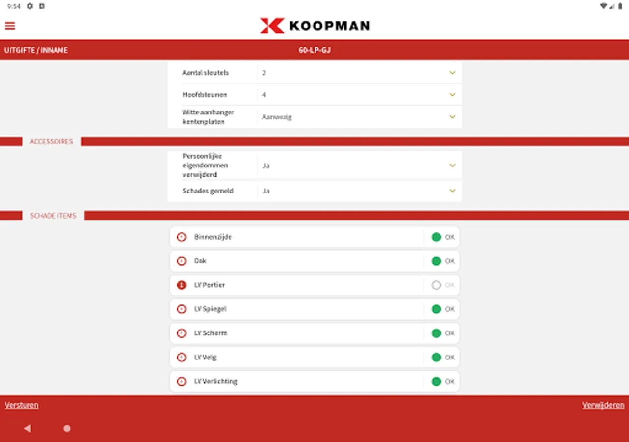 Koopman Inspectie is an app with which car inspections can be carried out. The app is intended for people who are employed by Koopman or who are hired as hikers. External parties can also use this app. Please contact Koopman for more information.