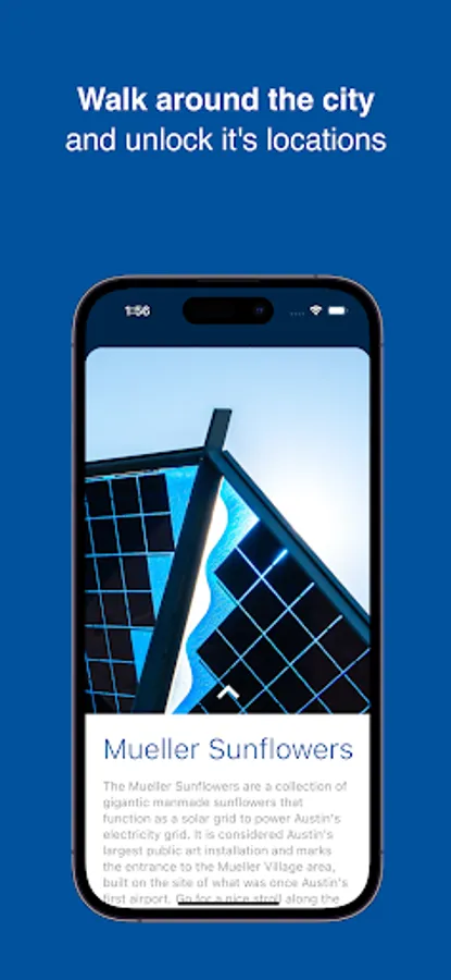 Hello Austin is a new type of guide app focussing on getting you to explore the city on your own. Instead of showing you the highlights of Austin, our maps only show question marks. To find out what these spots are, you will actually have to go there! Once you unlock a location in the app, you will be able to see information about this location.