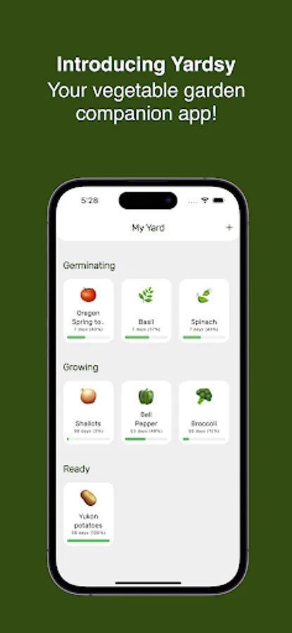 Introducing Yardsy, a mobile companion app for your vegetable garden. Manage your crops and track progress from seeding through harvest, whether you’re a first time or seasoned gardener.