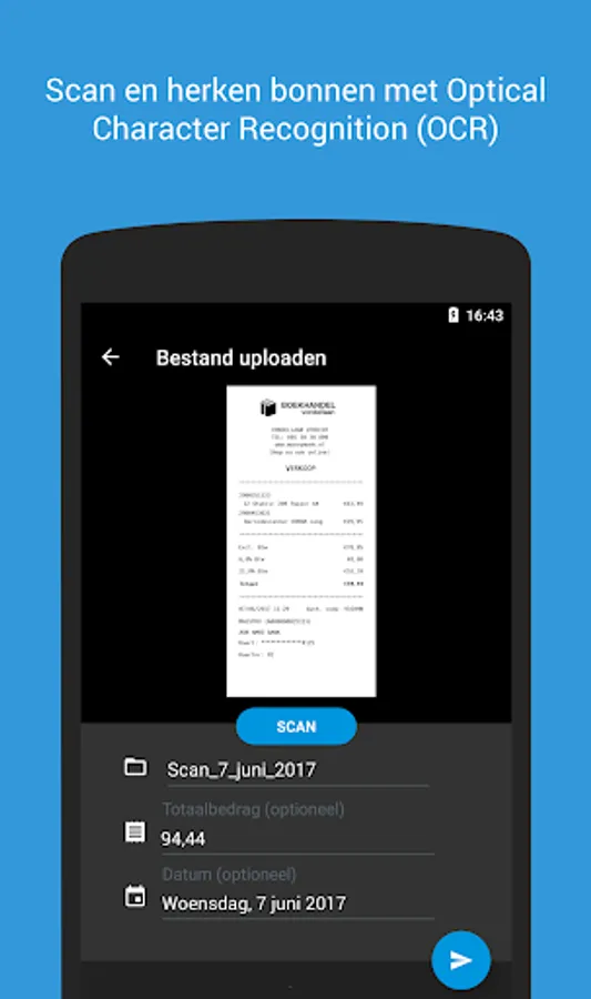 Never lose receipts lost, forget the accounting papers! Easily create pictures of receipts and use scan and recognize (the intelligent OCR technique Money Monk) to automatically scan the amount and date. In Money Monk can be found vouchers and process them quickly in your ZZP accounting. Money Monk makes accounting easy for freelancers!