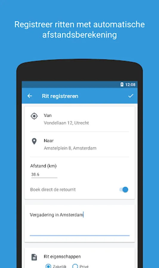 Join rides not excel; save yourself the trouble and keep your driving route at. No more self-calculate the mileage, the app automatically registers you for the mileage. (For free) trip registration is really this way easy going!