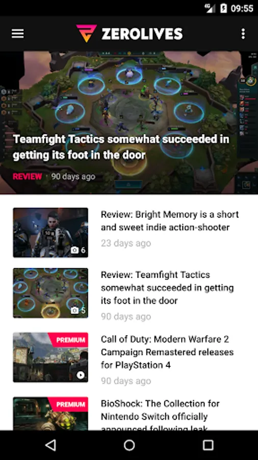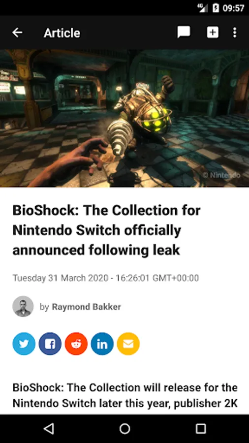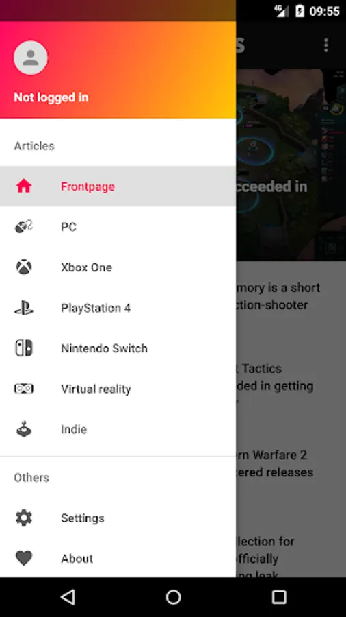 The app features several news categories that allows readers to view news related to a specific platform, including PC, Xbox One, PlayStation 4, Nintendo Switch, Virtual Reality, and Indie.
