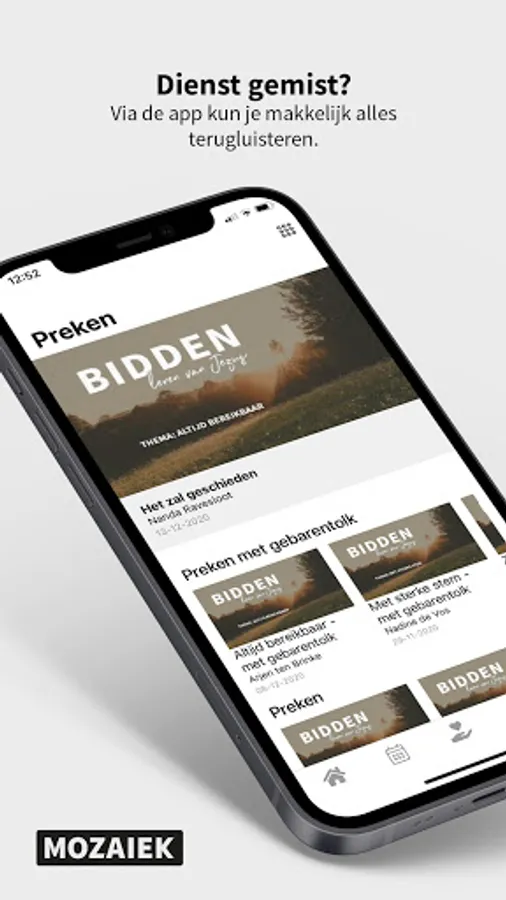 With this app you are directly, securely and privately connected to your Mozaiek municipality. You can find information, listen to sermons and contact your congregation. Are you part of a team? Then you can also find your timetables or indicate your availability in the app