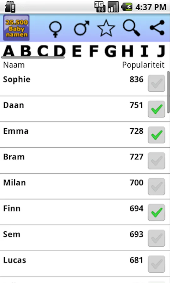 Pregnant and looking for a name for the upcoming baby? select your favorites from more than 25,500 names and save them so you can later make a choice. You can sort by name, but also popularity of the name.