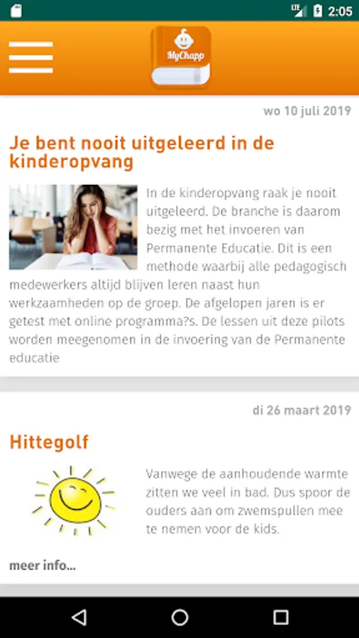 Then you can now follow updates to your daycare anywhere and anytime. Download the app on your smartphone or tablet and enter your details. You can apply wherever and whenever you want, register hours, request leave or adjust your personal details. Is there news from your childcare? You will immediately receive a push message.
