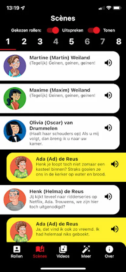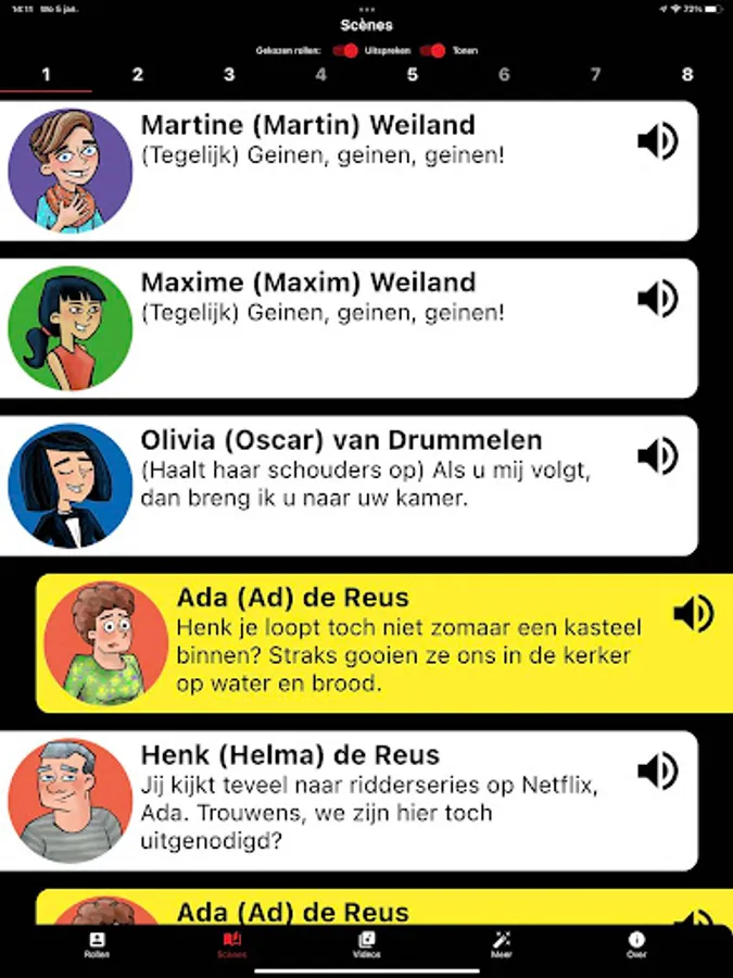 Choose the version for the exact number of players in your class and practice all the scenes you play in. In the deluxe version you also practice how to say a text with the spoken script!