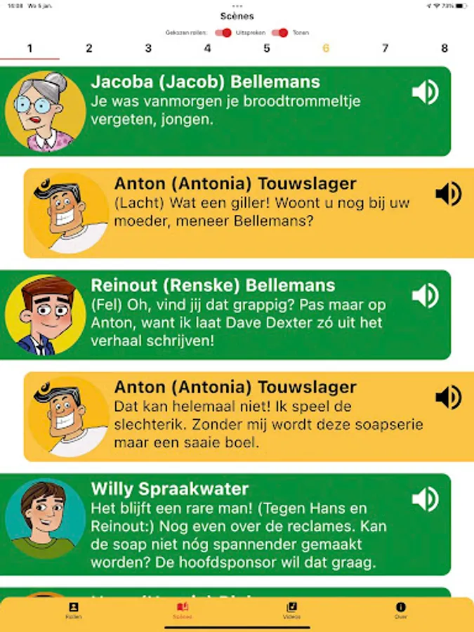 Choose the version for the exact number of players in your class and practice all the scenes you play in. In the deluxe version you also practice how to say a text with the spoken script!