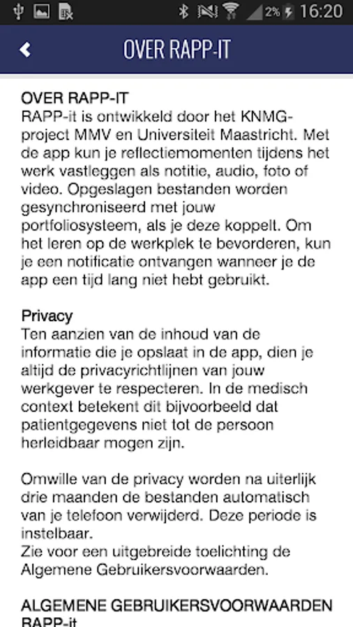 With RAPP-it can capture teachable moments during your work for reflection at a time when it better suits. You can capture the teachable moments as notes, photographs, audio or video. This app promotes awareness of this valuable learning moments which do not get lost them. Because the files may contain sensitive information is stored encrypted data and get the user to a login code in order to use the app.