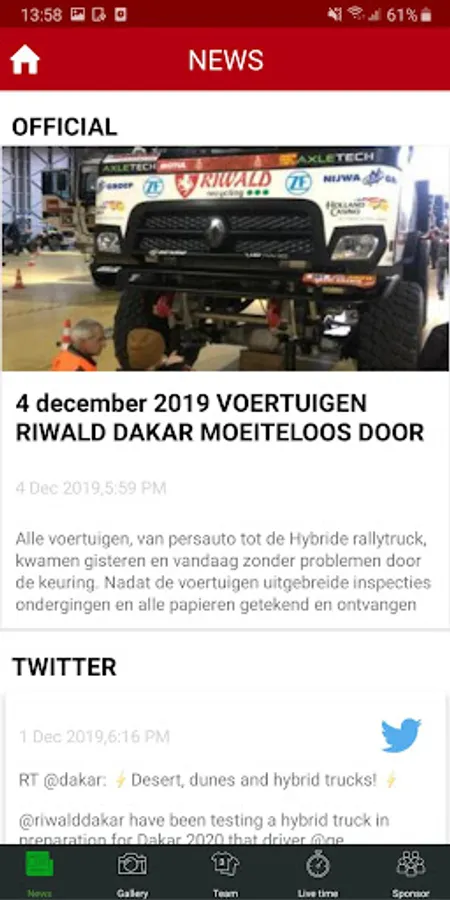 The Riwald Dakar Team since 2012 active in include the Dakar Rally. In this app you can find the team's latest and fastest live timing!