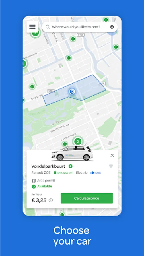 Car-sharing has nothing but advantages. With our community of car-sharers, we aim for ease of use, saving money, and a better environment. You only pay for what you use. Say goodbye to the hassle of periodical inspections, car insurance, or coordinating key exchanges—and choose for easy subscription-free driving at affordable rates.