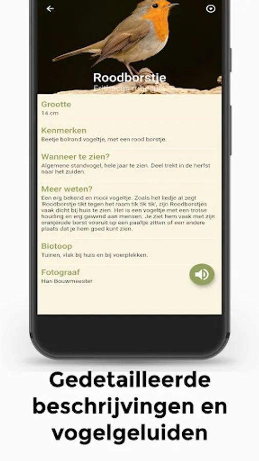 Be careful when playing bird sounds in nature. Especially in the spring, birds react strongly to this and that is lost energy. True connoisseurs take earphones (headphones) into the field. One ear for listening to the bird and the other for the app. Enjoy nature !!