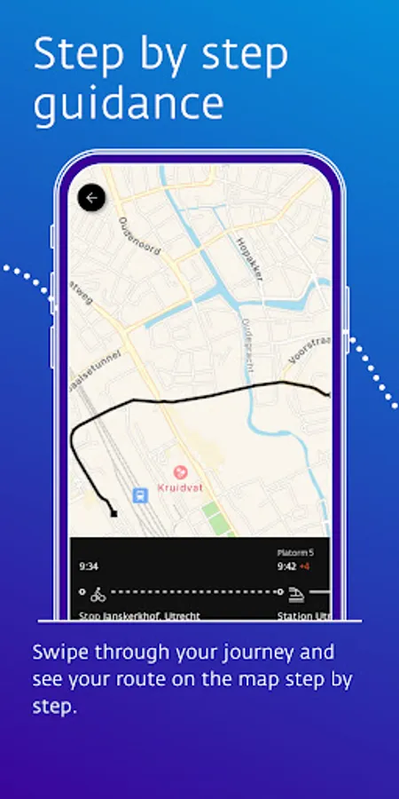 The travel advice shows you a map with the route of that advice. Press on this and you will see the travel advice step by step on a detailed map. Now you can swipe through your entire trip!
