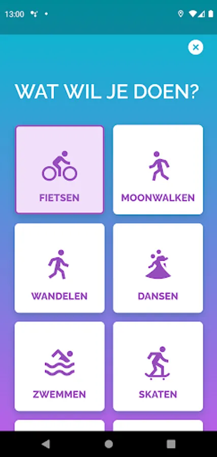 Download the app and choose how you want to move forward, you can choose 10 activities, such as cycling and walking, but also moonwalking or dancing.