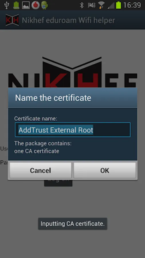 Locally generates a certificate for your android device and uploads it to be signed at Nikhef after which you can securely connect to eduroam, despite androids extremely poor certificate checking.