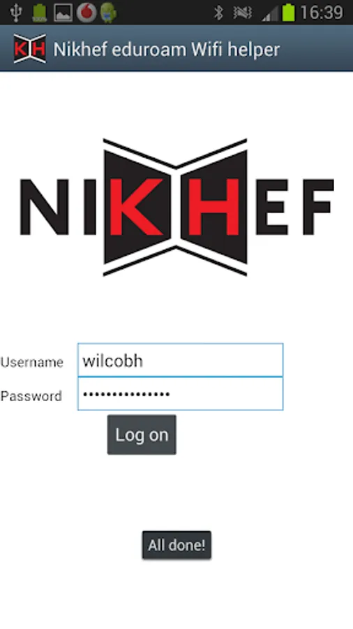 Works only for Nikhef users, fill in username without @nikhef.nl.