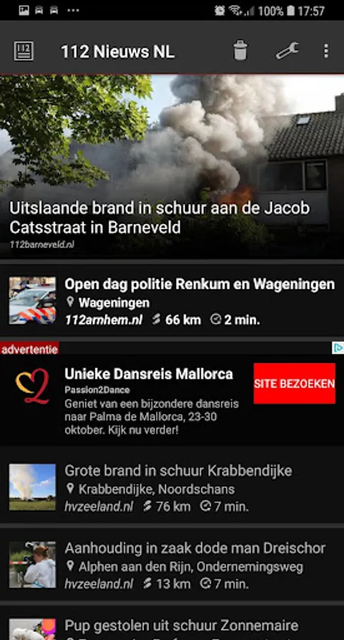 In this app you will find all 112 News from all over the Netherlands in one overview: