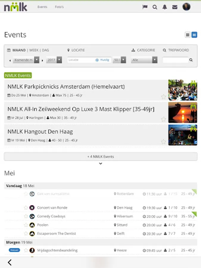 A new city, a new job or looking for new events & friends? NMLK has been the largest entertainment community for enterprising people in the Netherlands for more than 15 years. Members and crew organize more than 200 (small-scale) events here every week where people meet each other in real life. From Groningen to Maastricht. You always meet new people your age and with similar interests in your area.