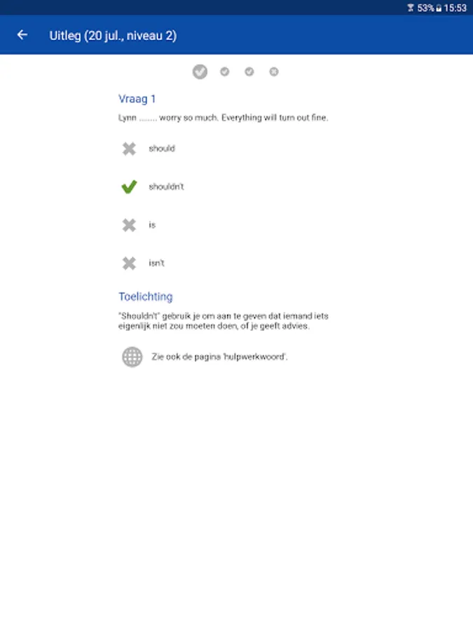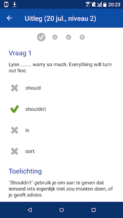 Now Better English: every day a test to keep improving your English skills as well. You will receive four multiple choice every day, and we ensure that you can exercise some common things every week with these four questions per day.
