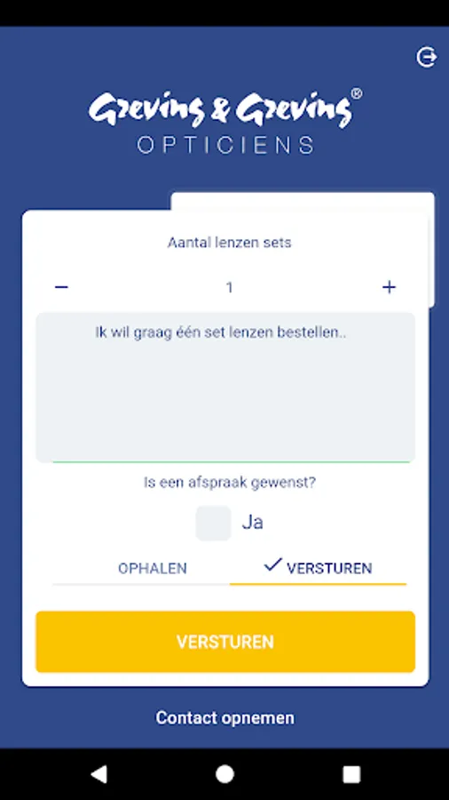 Via the Greving & Greving app you can order lenses quickly and easily. With a few clicks you can quickly order one or more new sets of lenses. Is an appointment desired? Do not hesitate to inform us, we will make an appointment.