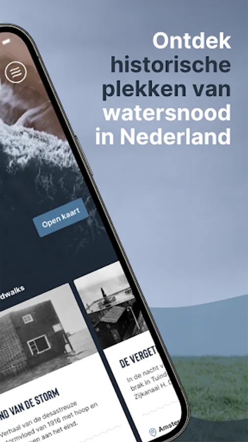 Go to the starting location, put in your earphones or headphones, and the app will do the rest. Winfried tells you during the route what happened at the places where you walk. He tells you about how residents armed themselves against the water, how they fled from it, but also how they learned to live with the water.