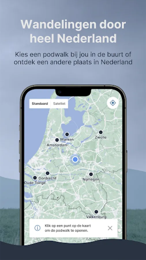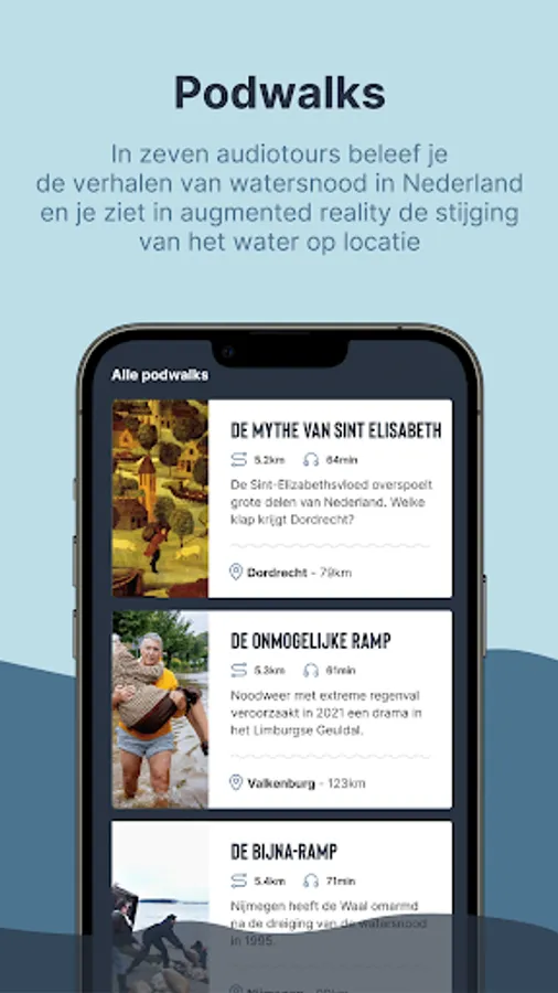With the podwalk app you walk and listen at the same time. Walk with Winfried Baijens through areas in the Netherlands and listen to stories about flood disasters in history and about protection against the water in the future.