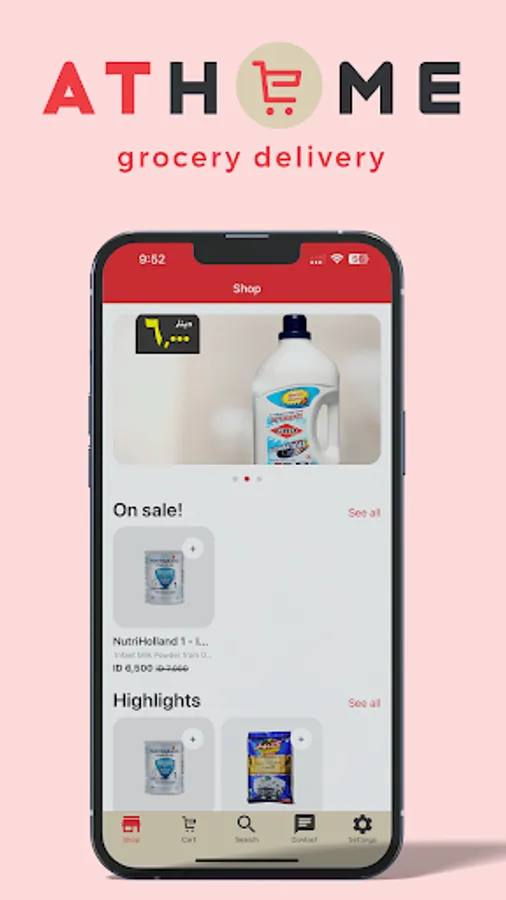 You need the AtHome app to place an order. Download it below, then register, you can collect all of your groceries on the app as soon as you can place an order. Place your order, select a delivery time and we deliver it to you at your home or any place you want.