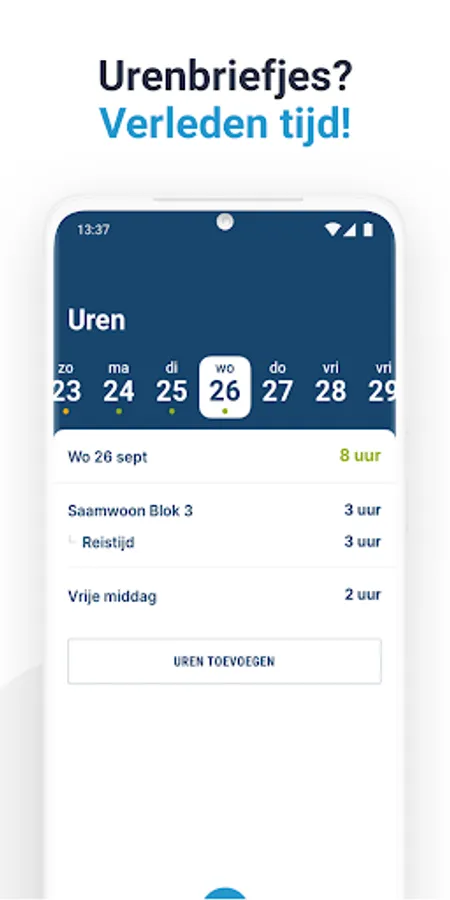 Geen gedoe meer met urenbriefjes. Je kunt je uren nu makkelijk via de app bijhouden en registreren. En boek je je uren vanuit je planning? Dan vult hij de belangrijkste informatie alvast voor je in.