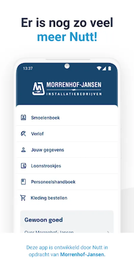 Deze app is ontwikkeld voor alle medewerkers van Morrenhof-Jansen installatiebedrijven. De app helpt jou en je collega’s slimmer en sneller te werken door de volgende functionaliteiten.