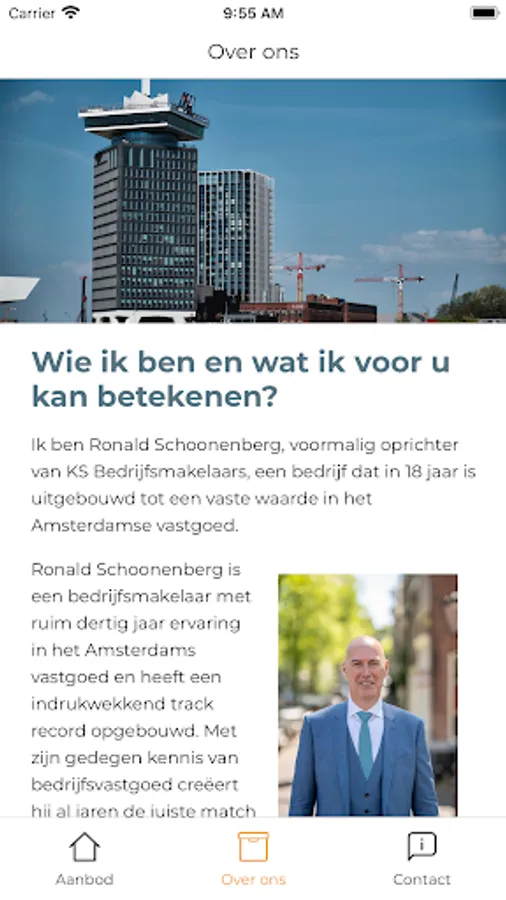 I am Ronald Schoonenberg, independent business broker with over 30 years of experience in Amsterdam Real Estate. If you are looking for a business broker where you receive guidance from A to Z, then I am the broker you are looking for. Very nice, support at every step of the process.