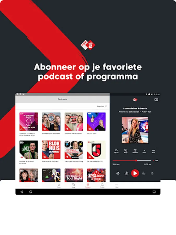 NPO Radio 2 is the radio station of the Dutch Public Broadcasting that stands for a broad love for music. With DJs such as Ruud de Wild, Annemieke Schollaardt and Gijs Staverman, we keep millions of listeners connected to what's going on every week. Great events take place at NPO Radio 2 all year round, with the NPO Radio 2 Top 2000 as the highlight!