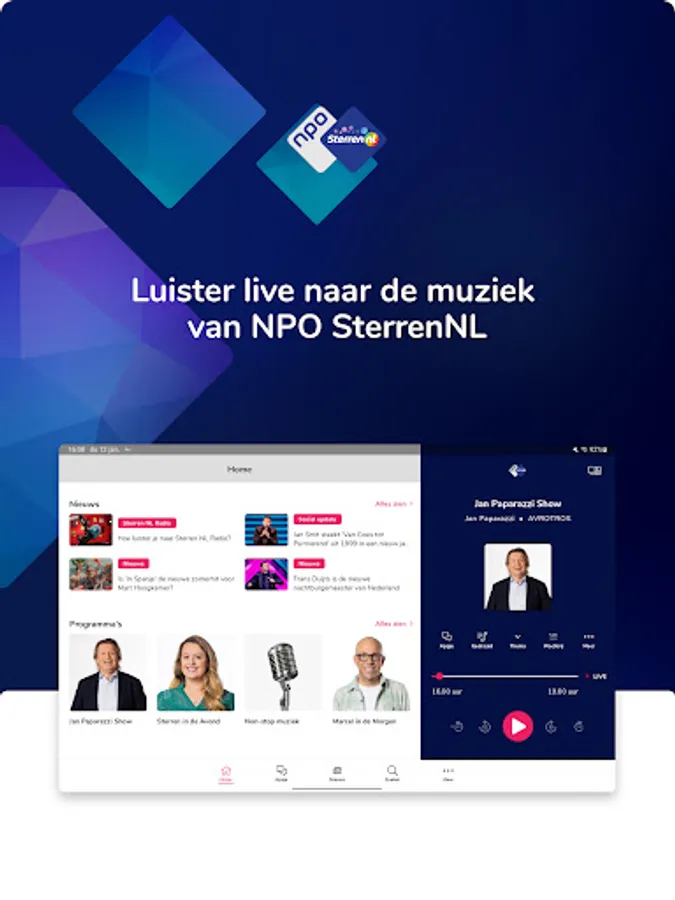 Listen 24 hours a day via this app to Sterren NL Radio, the radio station for the best Dutch and folk music. From Jan Smit to Django Wagner and from Gerard Joling to Willeke Alberti ... You can hear them all. In addition, you can read the latest news about the stars and you can participate in beautiful promotions.