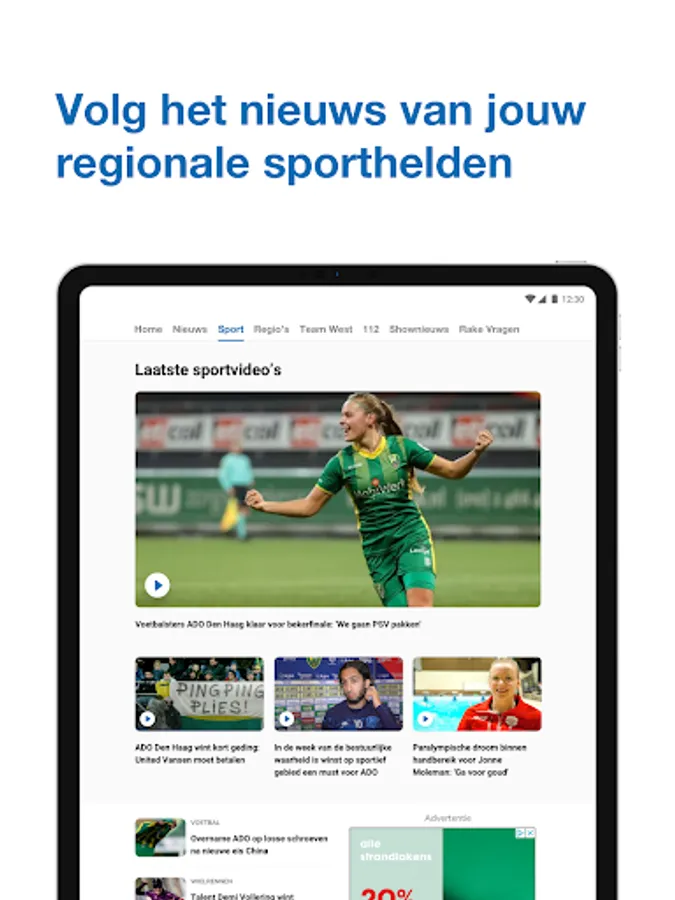 As soon as you open the app, you will always see the most important news and the latest videos of that moment. At the top of the screen you choose the same region that you prefer. On the 'Just arrived' page you can see the latest news at a glance.