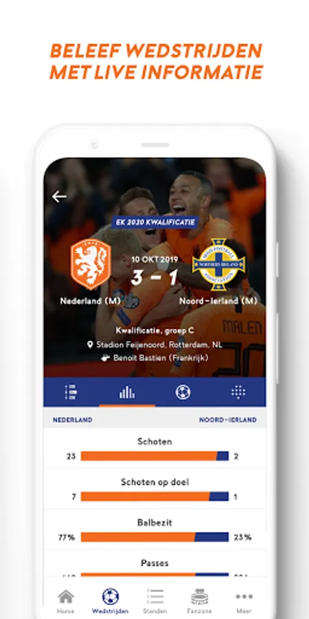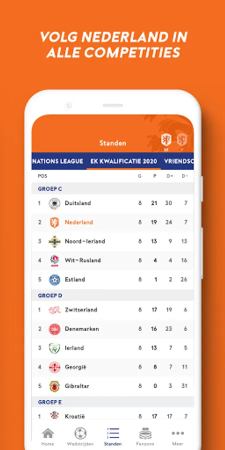 The official free KNVB Oranje app is the app for fans of the Dutch national team and the Dutch women's team.
