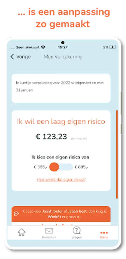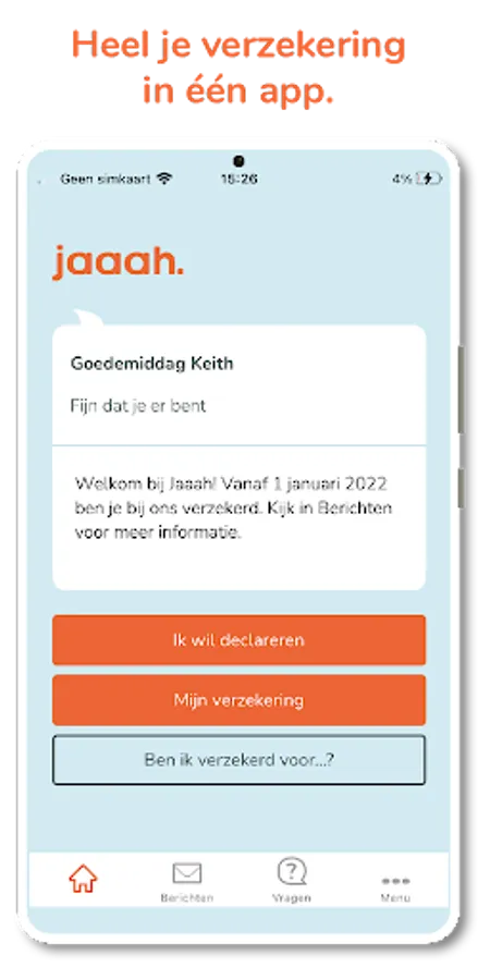 Jaaah is fully mobile, so everything goes through our app. This way you always have your health insurance at hand. The first time you log in with your DigiD to activate the app. You can then log in with a pin code, fingerprint or facial recognition.