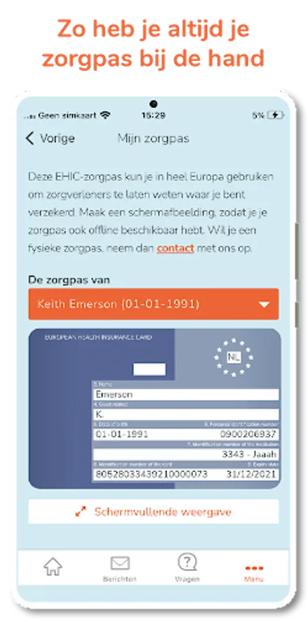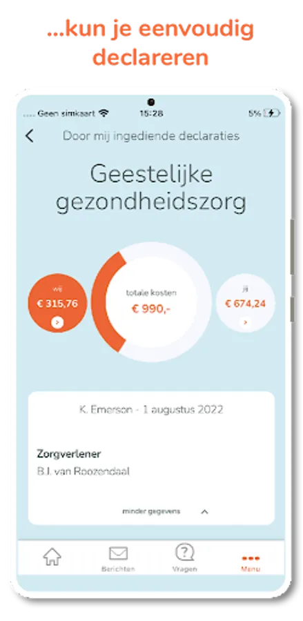 - see immediately which care and care provider you will be reimbursed