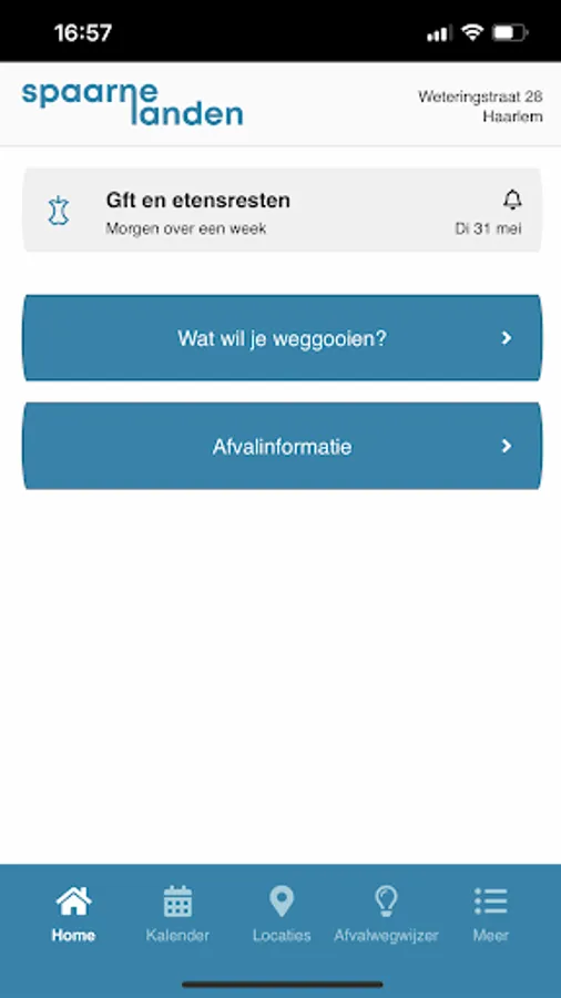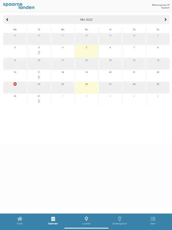 Download the Spaarnelanden app and enter your postcode and house number. The calendar shows when we collect various waste in your street. Also in the waste pointer which waste goes where. Convert reports to get a message retrieval of waste and other news.