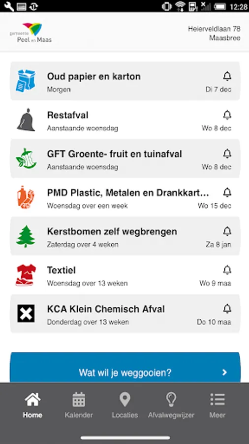 Also check the waste guide to see which waste belongs where. Turn on notifications to get notified about garbage collection and other news.