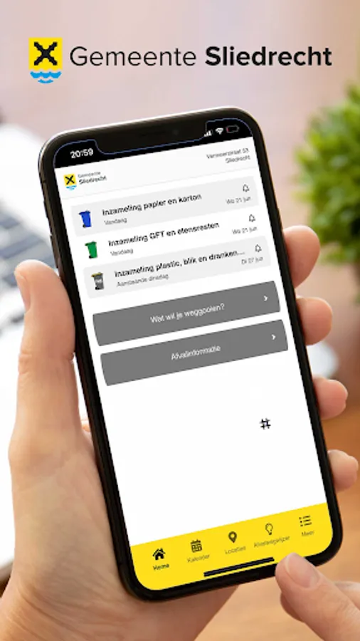 Download the waste app for the municipality of Sliedrecht and enter your zip code and house number. The waste calendar shows when we collect the different types of waste in your street.