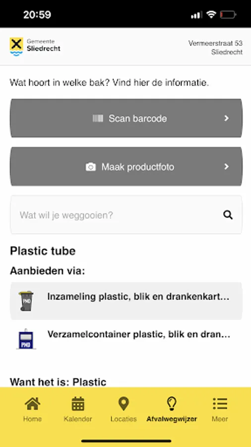 Look in the waste guide to see which waste belongs where or use the special scanner that recognizes products based on the barcode or a photo. Turn on notifications to receive a message about garbage collection and other news.