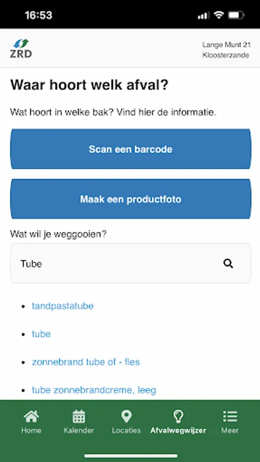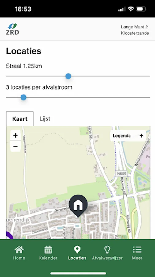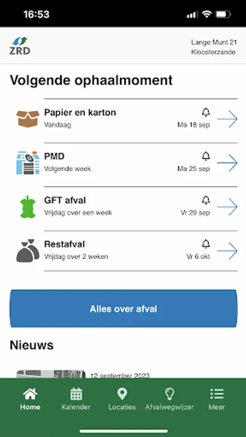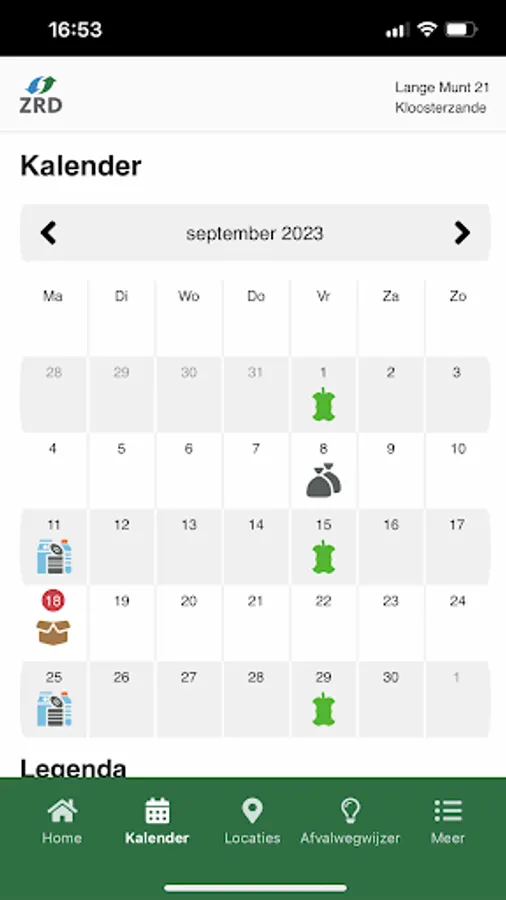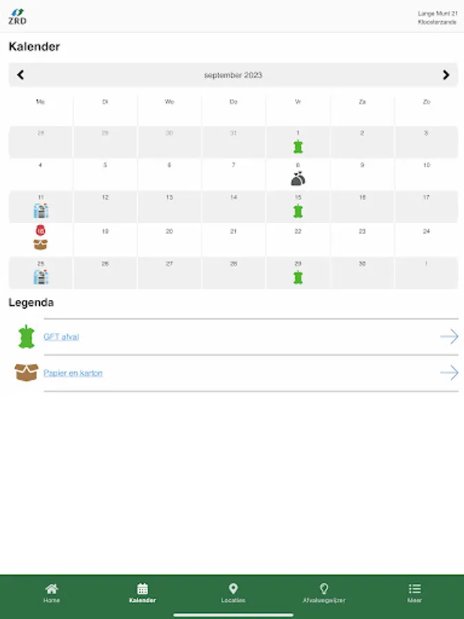 The ZRD app shows the collection days for the municipality of Hulst, Kapelle, Noord-Beveland, Reimerswaal, Sluis, Tholen and Veere.