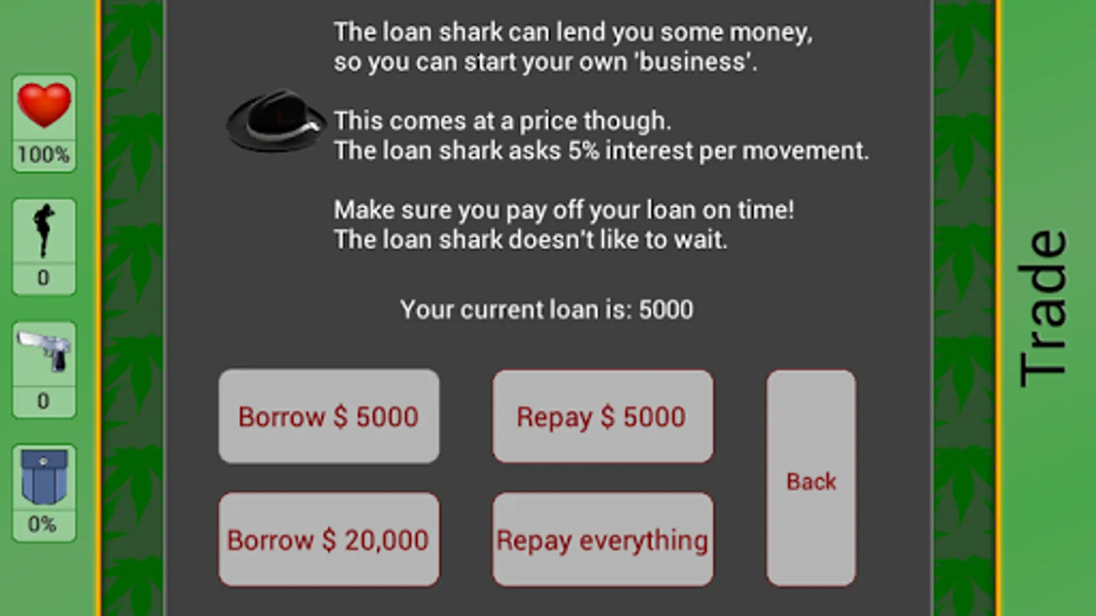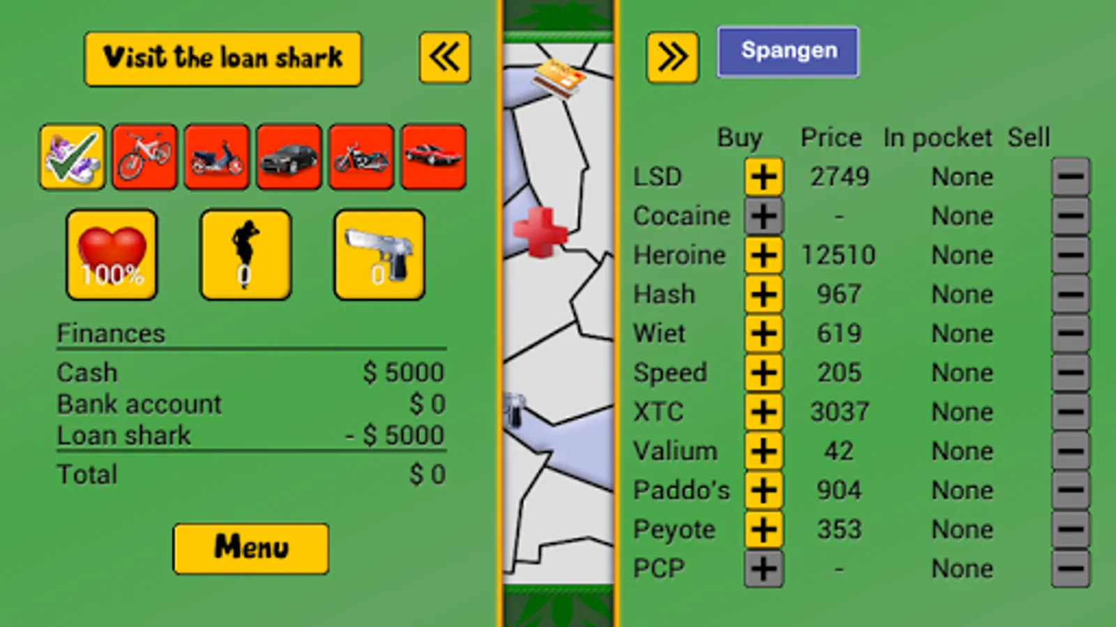 Travel around the Dutch city of Rotterdam, and buy and sell drugs. Just like in the old Dos game.