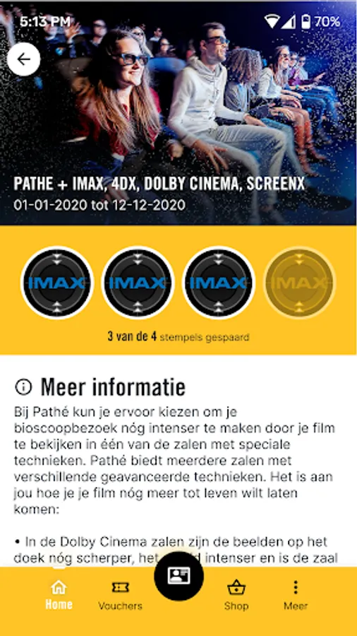 In the Club Pathé app you automatically save points with which you can receive free products and discounts on tickets, snacks or fun items. You can also participate in fun promotions: complete your digital stamp card and receive a reward! Are you a Pathé subscriber? You can also save then. You automatically receive new points in your account every month. The longer you are a subscriber, the more points you get! Points previously saved with All Stars remain valid.