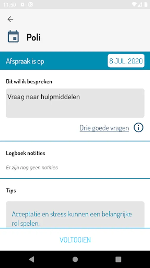 Poli appointment - Here you can indicate what you want to discuss at your current appointment.