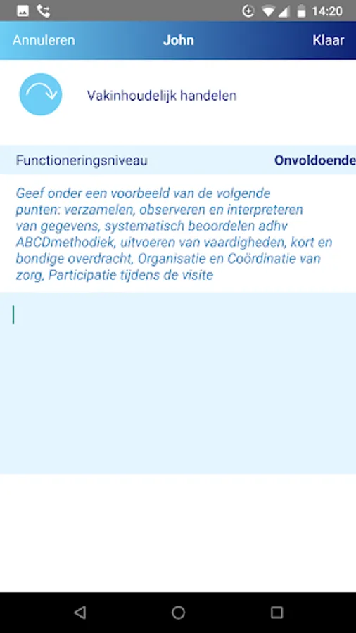 The coach opens the app and can be / give her feedback on a number of predefined questions. This feedback is voiced by the coach and turned into text.