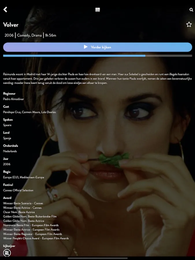 • Convenient search or make your own selections on our Discover page (including genre, awards, festival, country, year).